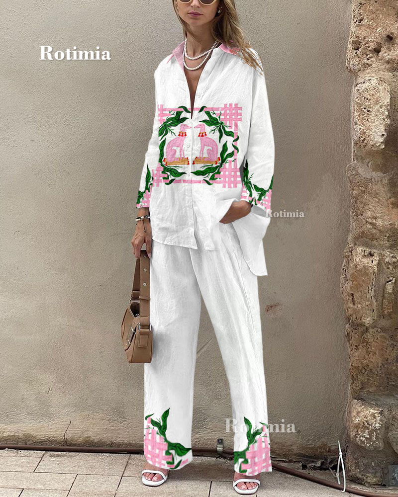 Category:Printed Long-sleeved Shirt Pants Suit